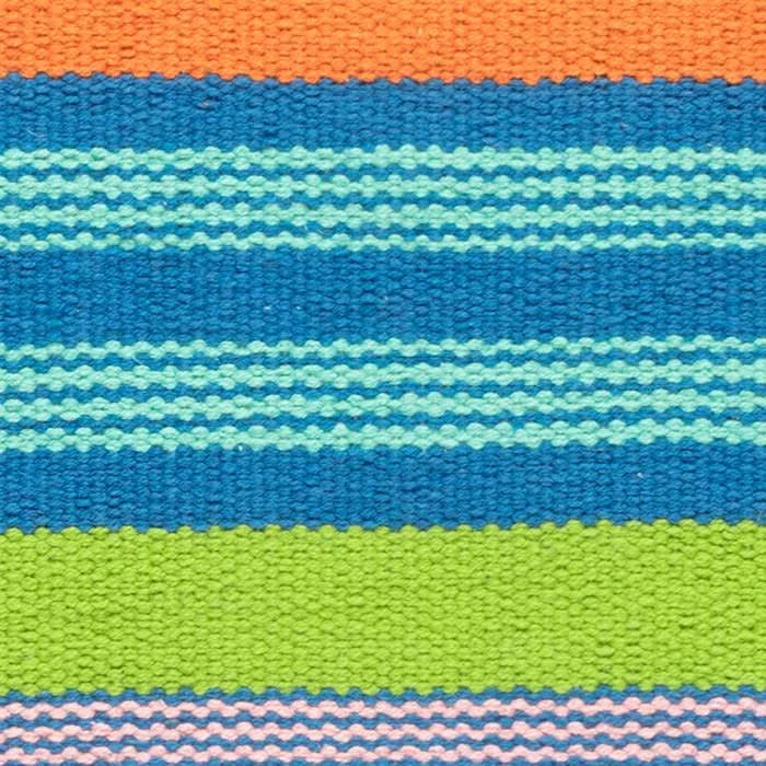 Brilliant, bright, and beautiful. Regimental stripes get an unpredictable style update with a retro color palette. Available in fresh and fun colorways to suit every mood. Constructed using a hand loomed dhurrie flat weave in durable, soft cotton. These rugs are dense, reversible, hardwearing, and affordable. Find bold comfort underfoot everywhere you step.