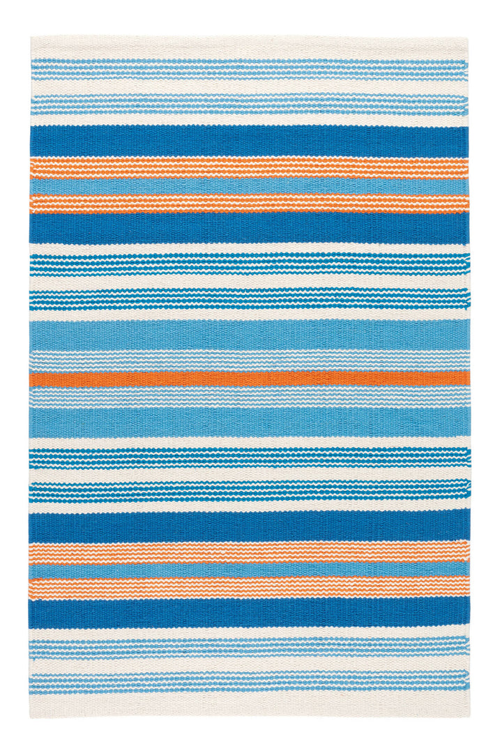 Brilliant, bright, and beautiful. Regimental stripes get an unpredictable style update with a retro color palette. Available in fresh and fun colorways to suit every mood. Constructed using a hand loomed dhurrie flat weave in durable, soft cotton. These rugs are dense, reversible, hardwearing, and affordable. Find bold comfort underfoot everywhere you step.