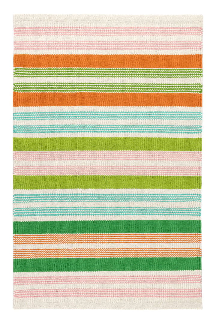 Brilliant, bright, and beautiful. Regimental stripes get an unpredictable style update with a retro color palette. Available in fresh and fun colorways to suit every mood. Constructed using a hand loomed dhurrie flat weave in durable, soft cotton. These rugs are dense, reversible, hardwearing, and affordable. Find bold comfort underfoot everywhere you step.