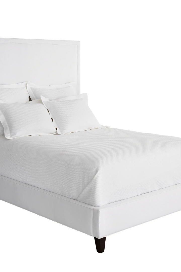 Dramatically scaled and clean lined, our Stonington bed awaits your fabric choice. This custom-upholstered bed makes a showstopping statement in any bedroom. A mitered corner border introduces a subtle visual contrast that adds the final polish. Exclusively available from Annie Selke.