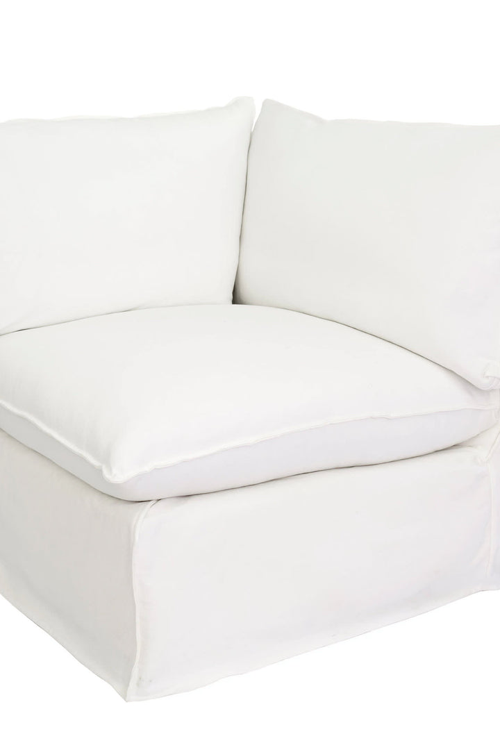 The relaxed silhouette of this modular armless chair works well in just about any style of decor. As a stand-alone or a component of a sectional, it offers exceptional versatility and the ability to grow with your needs. Kiln dried hardwood framework is the foundation for outstanding support. Generous down and feather padding envelops the eco-foam core of the cushions for a soft and nestlike feel. The crisp tailored slipcover and skirt offers customizable style and practicality.