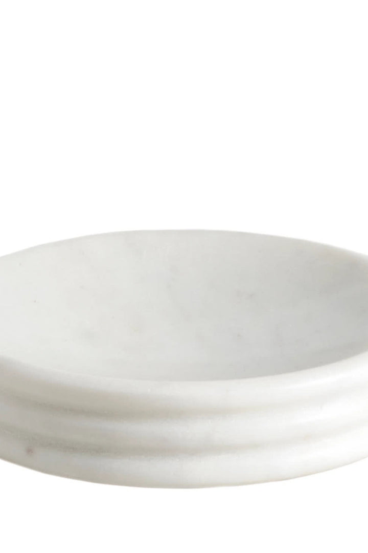 Need help keeping bathroom clutter at bay? These coordinating white ribbed marble bath accessories will bring calm uniformity to your surfaces. Elegant and purposeful, they create a sense of serenity and harmony. The natural veining of this gorgeous stone, found deep in the mountains of Rajasthan, means each piece is unique. Our selection comprises a tissue box, a soap dispenser, a tumbler, and a soap dish. Hand fabricated and polished to a satiny finish.