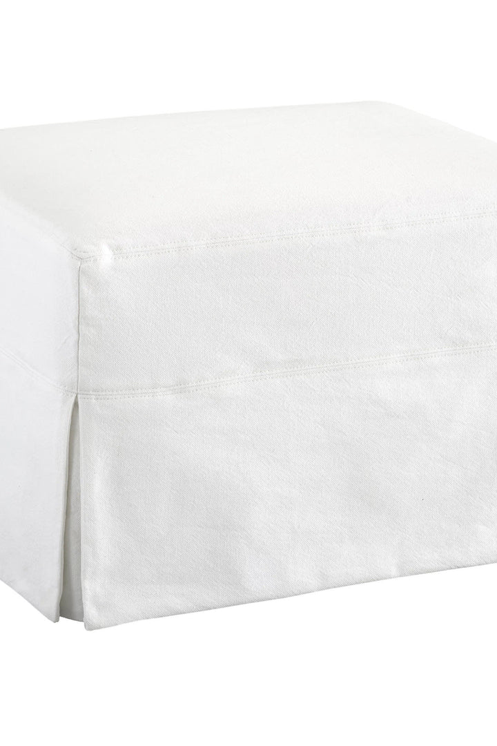 Comfortable, built to last, and uncompromisingly stylish, this custom slipcovered ottoman is a classically built living room staple. The Cloud 9 cushions and durable hardware frame will withstand family game night, movie marathons, and those rare, quiet moments, with equal resilience. Customize it by choosing from an array of custom upholstery from Annie Selke.