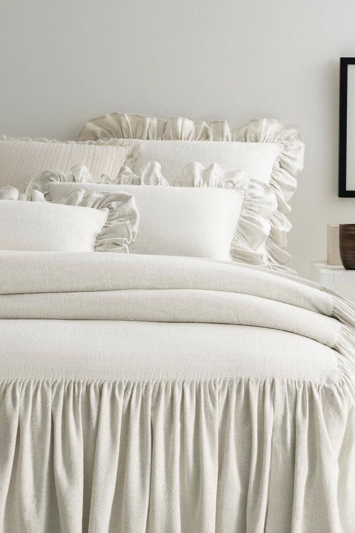 An all-new cotton/linen take on one of our best-selling products. Bedspread has 30-inch, gathered drop.