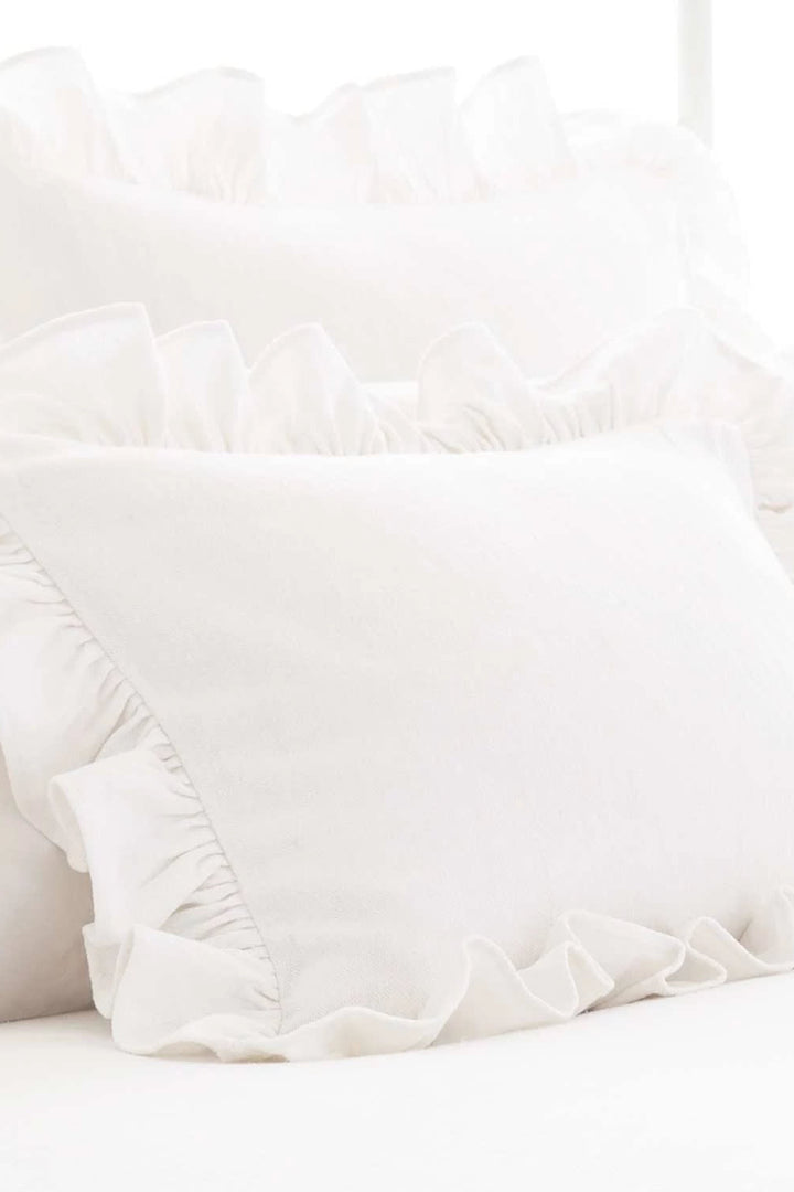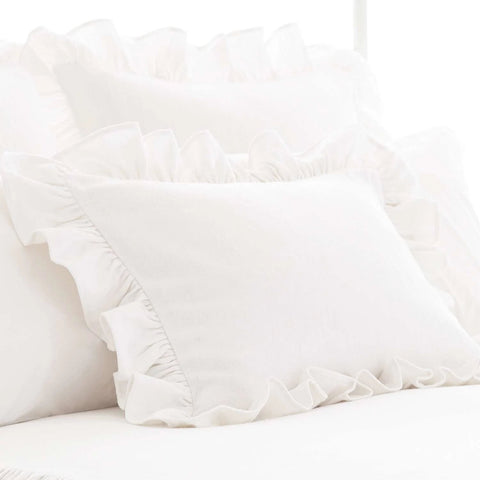 An all-new cotton/linen take on one of our best-selling products. Sham has 4-inch ruffle, tie-back closure.