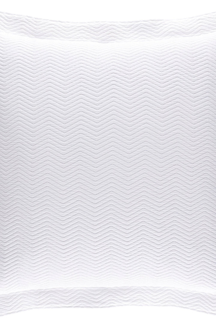 Horizontal chevrons bring an elevated, geometric update to these beautiful cotton shams. The densely woven, traditional construction mimics finely quilted handwork. The result? Lightweight, luxurious pillow covers that easily transition through all the seasons. Made on traditional looms in a centuries-old mill in Portugal.