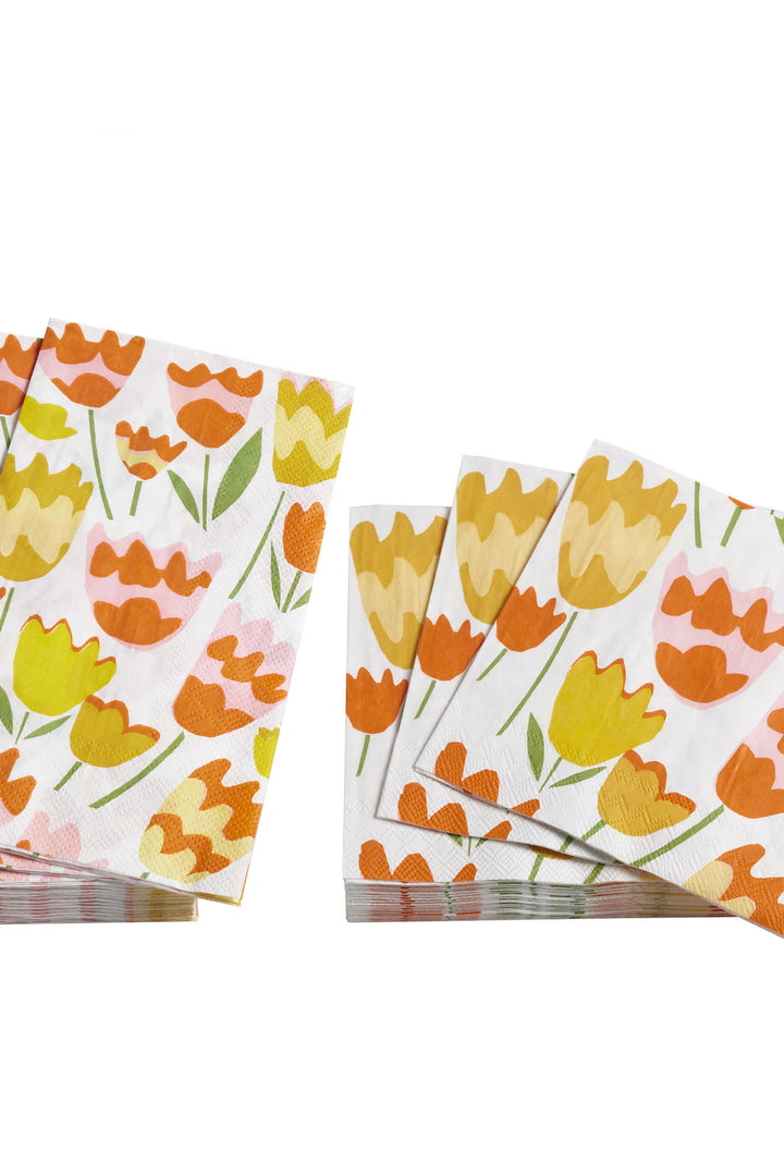 Step up your style with jaunty tulips in earthy Green, Ochre, and Ivory scattered over an Aqua ground. These eco-friendly, single-use paper napkins bring style and convenience to your gatherings. In two sizes: cocktail napkins for drinks and small handheld bites, and guest towels for your powder room. Manufactured in Germany using environmentally-conscious raw materials, ensuring they are both biodegradable and compostable.