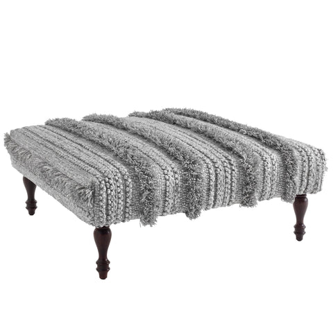 Materials: 100% PET with removable wooden legs. Frame made of mango wood with woven jute straps, springs, and jute canvas for durability. Cushion made of fire retardant polyurethane foam. The turned legs are made of Acacia Wood. The tapered legs are made of Mango Wood.