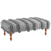 Is it a bench, a footstool, or a coffee table? Yes! This supersmart addition to any entryway, living room or bedroom is a versatile investment. The cushioned bench, held aloft by shapely turned-wood legs, is upholstered in "wool-touch" eco-friendly performance fibers. Stripes of nubby knots and sultry shag give it a luxe, textured flair.